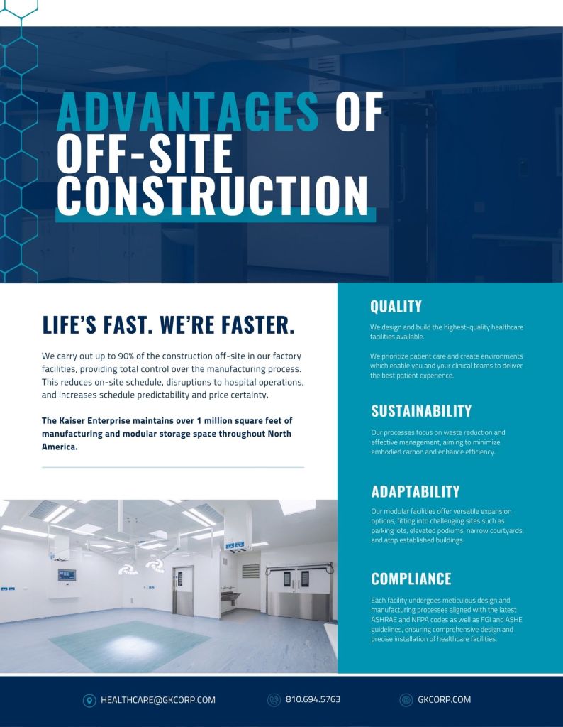 The Modular Healthcare Facilities brochure was created in preparation for the Health Care Facilities Innovation Conference in 2024.