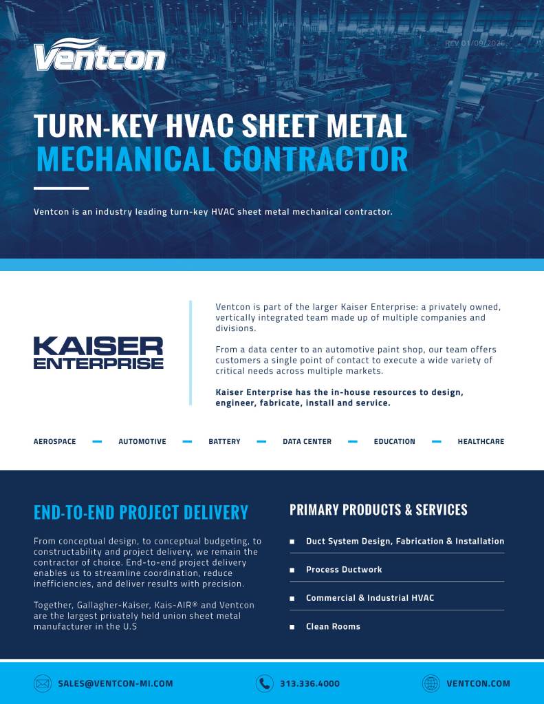 I designed a one-page brochure highlighting Ventcon, an industry-leading HVAC sheet metal mechanical contractor.